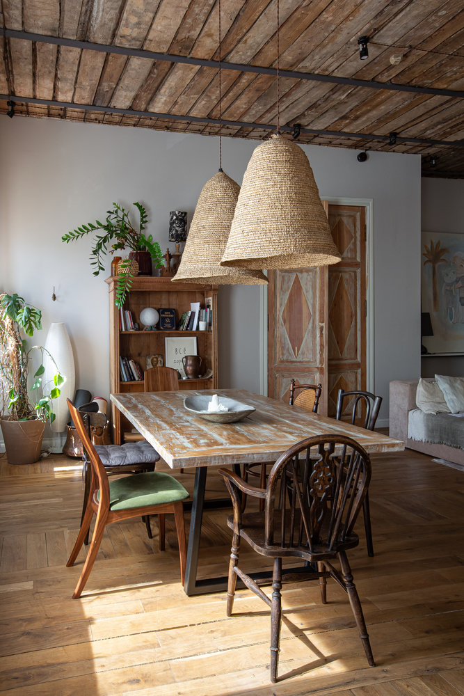 Фотография: Кухня и столовая в стиле Скандинавский, Эклектика, Эко, Квартира, Проект недели, Санкт-Петербург, 3 комнаты, Более 90 метров, Эли Гордеева, интерьер в балийском стиле, стиль Бали, атмосфера Бали в интерьере – фото на INMYROOM