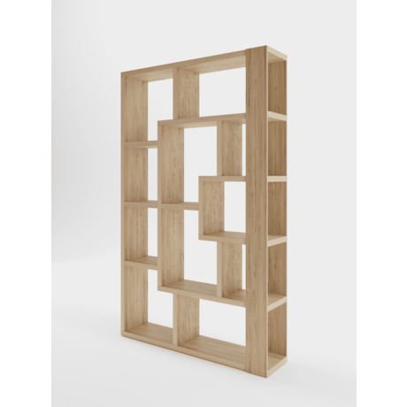 - Двусторонний дизайн — можно использовать как перегородку между зонами- Асимметричные ниши разного размера — удобно размещать как книги, так и декоративные объекты- Скрытый крепеж — никаких видимых болтов и шурупов, только чистые линииИдеальное применение