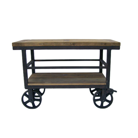 Стильный стол-тележка на колесиках с открытой нижней полкой.