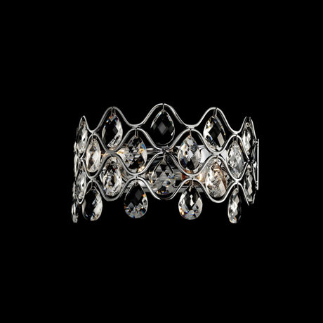 Настенный светильник из коллекции Nikon с хромированной арматурой, украшенной декоративными элементами из прозрачного хрусталя. Подходит в качестве дополнительного освещения и оформления интерьеров.