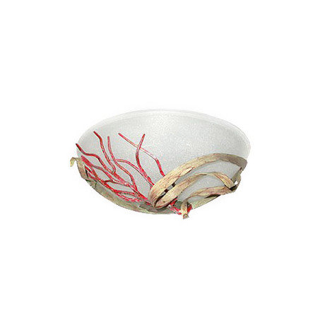 Настенный светильник с арматурой из кованного металла цвета латуни с патиной и розовыми потертостями. Плафон выполнен из стекла белого цвета. Украшают плафон красные веточки. Количество лампочек: 2; Мощность: 2 x 40 Вт; Тип лампы: Накаливания, E14