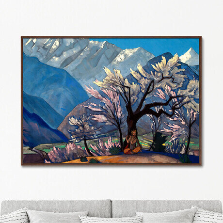 Репродукция "Кришна Весна в Кулу": медитативный пейзаж Гималаев с цветущими деревьями
