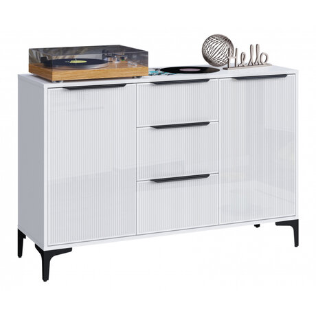 Комод низкий Сканди белого цветаИван СкрябинВ целом красивый, удобный комод, небольшой, идеально подойдет как полка для телевизора в гостиной или спальне. Единственный минус в том, что в комплекте идут слишком длинные саморезы и при сборке есть шанс пробить саморезом дверцу.